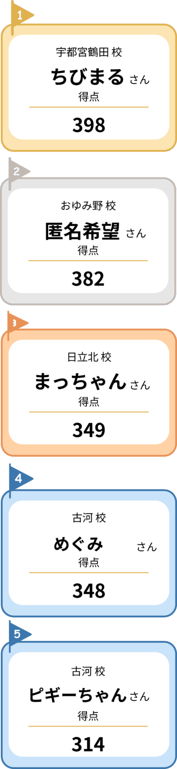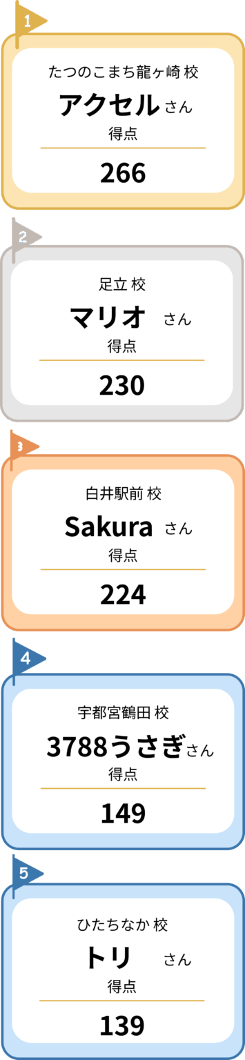 今回も全国全校で参加者を募り、子どもから大人まで合わせて286名にチャレンジしていただきました。
