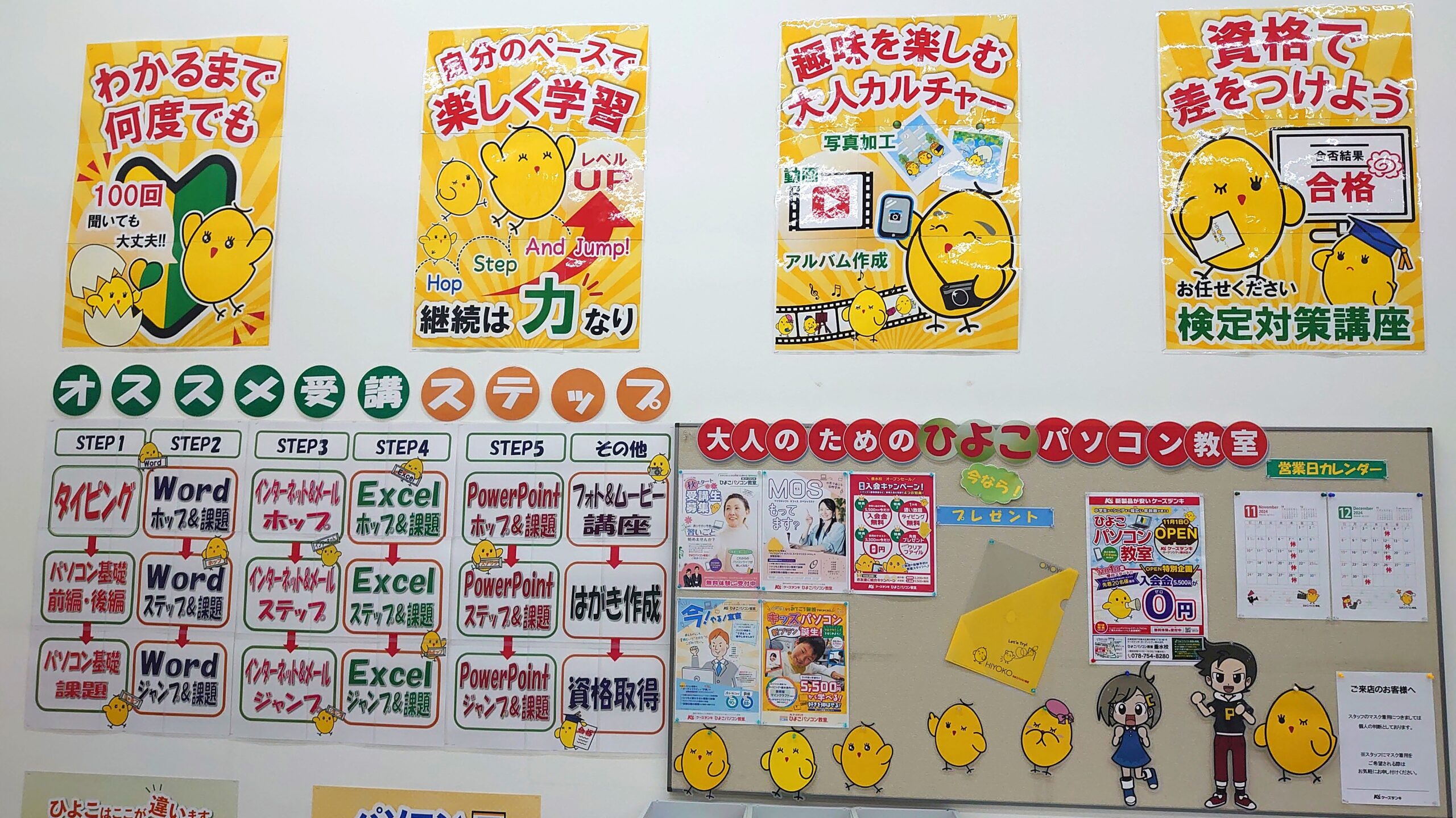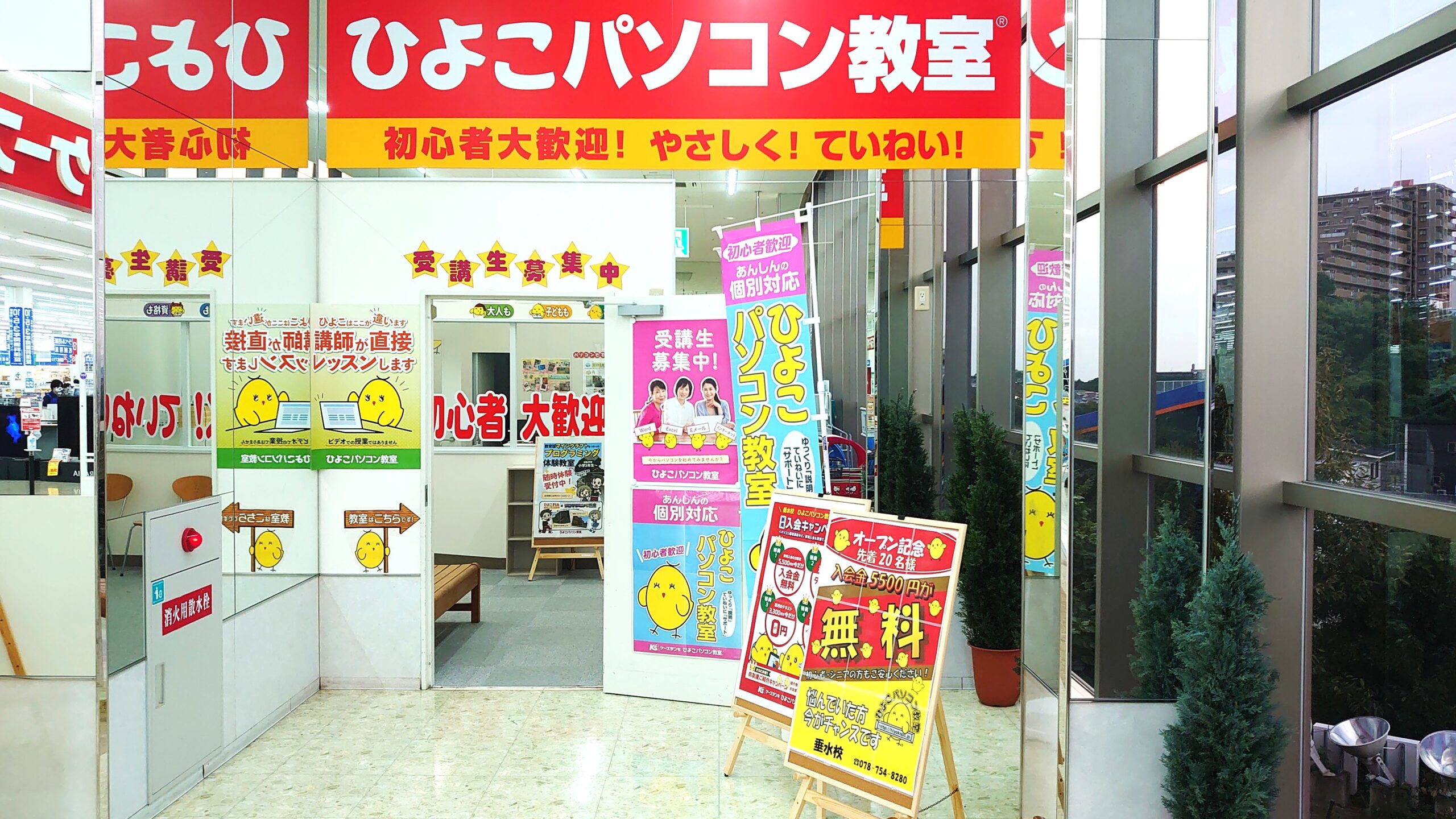 ひよこパソコン教室 垂水校は、商大線沿いのケーズデンキ ガーデンシティ垂水店内にあります。